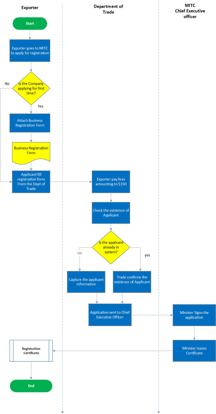 5 | The Department of trade will then cross check if the Applicant is already in the system or should have a new entry to avoid duplications. |